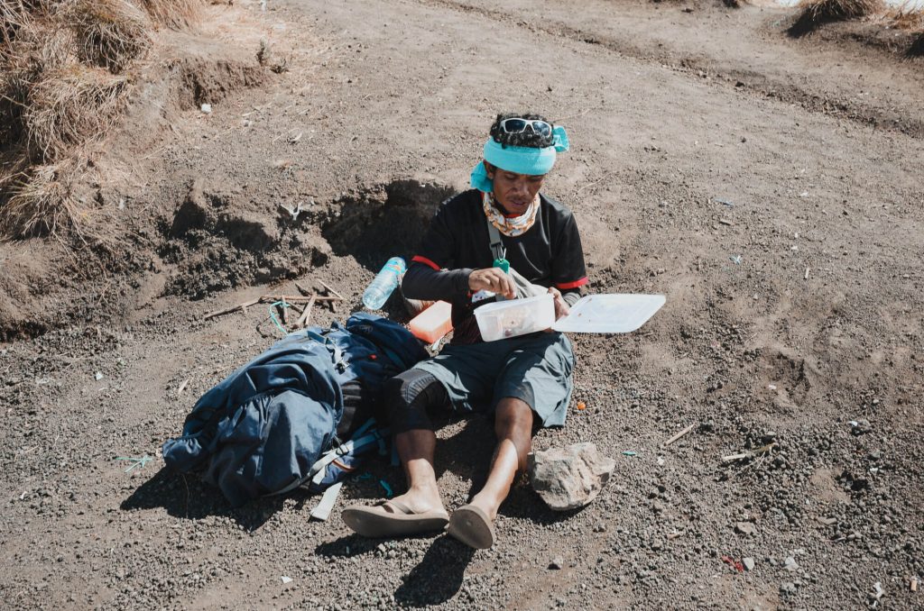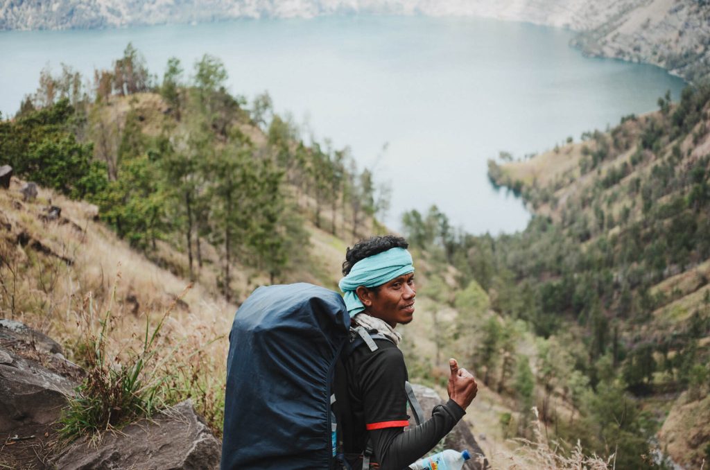 有別於在台灣我們可以選擇跟團或自組團隊,在印尼要爬龍目島需要跟當地的團隊接洽。以往都是自己背糧食和睡眠系統,難得有機會只需要輕裝,對我們來說根本是豪華登山了。這次很幸運只有我們兩個、一位嚮導和兩位揹工,沒有和其他人湊團。