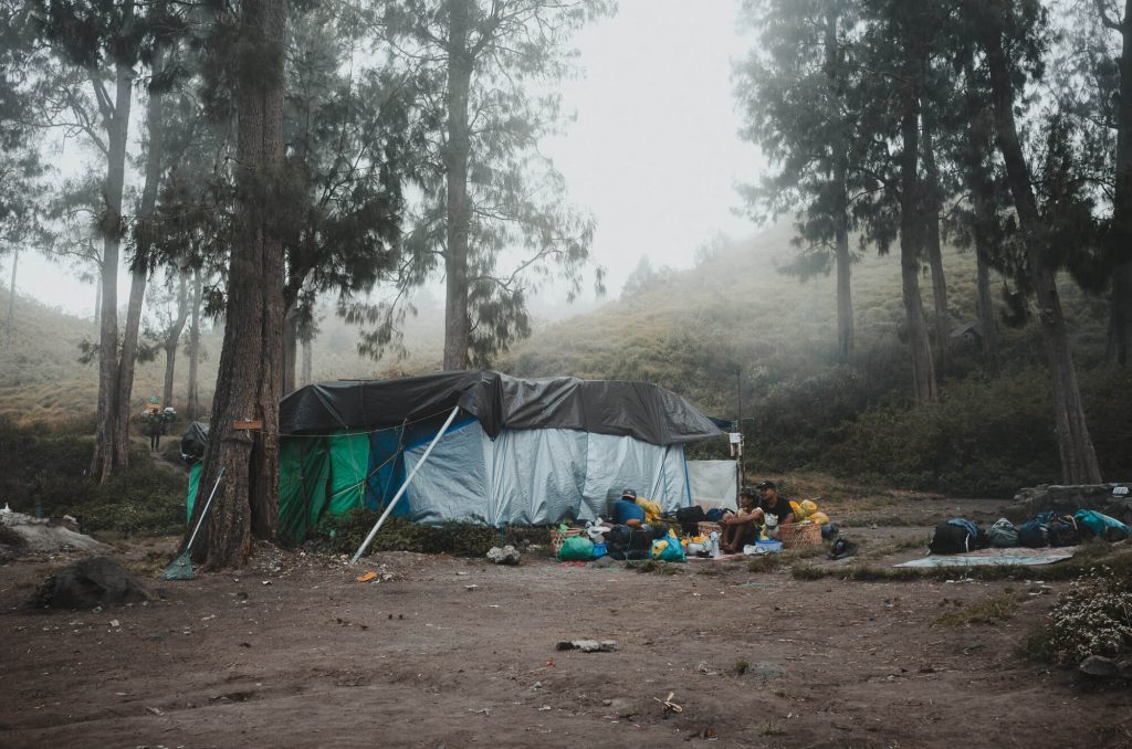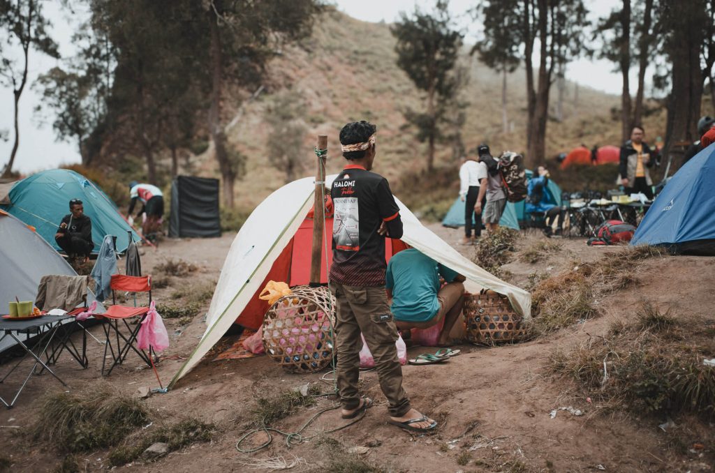 抵達營地時還不到中午,霧還很濃,雖然在稜線上卻完全看不見底下的湖泊。嚮導幫我們選了最佳的位置,坐擁360度的景色,後面來的隊伍都只能選在地勢比較低的地方,甚至太晚抵達的隊伍(攻頂後直接往Senaru走,而沒有在湖邊多待一晚的行程)只能繼續往前走,找看看有沒有適合扎營的位置,你能想像那天都一早起床攻頂了,卻還得面對營地不足得多走一段路的窘境嗎?