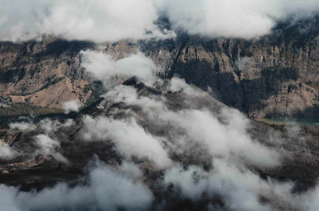 然而林賈尼有別於其他火山的,就在於它獨特的地形地勢,整個林賈尼山域是個破火山口,整圈火山口稜線最高峰就是林賈尼主峰,火山口裡面有一座巨大的火山口湖Segara Anak Lake,從Sembalun稜線、Senaru稜線都能看見湖泊的不同面向,更特別的是湖泊旁邊有一座小火山!也因為如此多變而魔幻的地形地貌,才更值得來走三或四天,欣賞不同角度的景象。