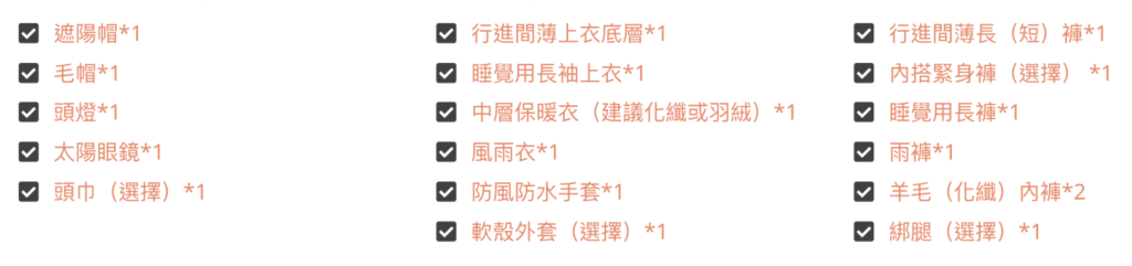 裝備的選擇,當然也跟行程安排大有關係,可以參考這裡,有問題也歡迎留言給我們囉!